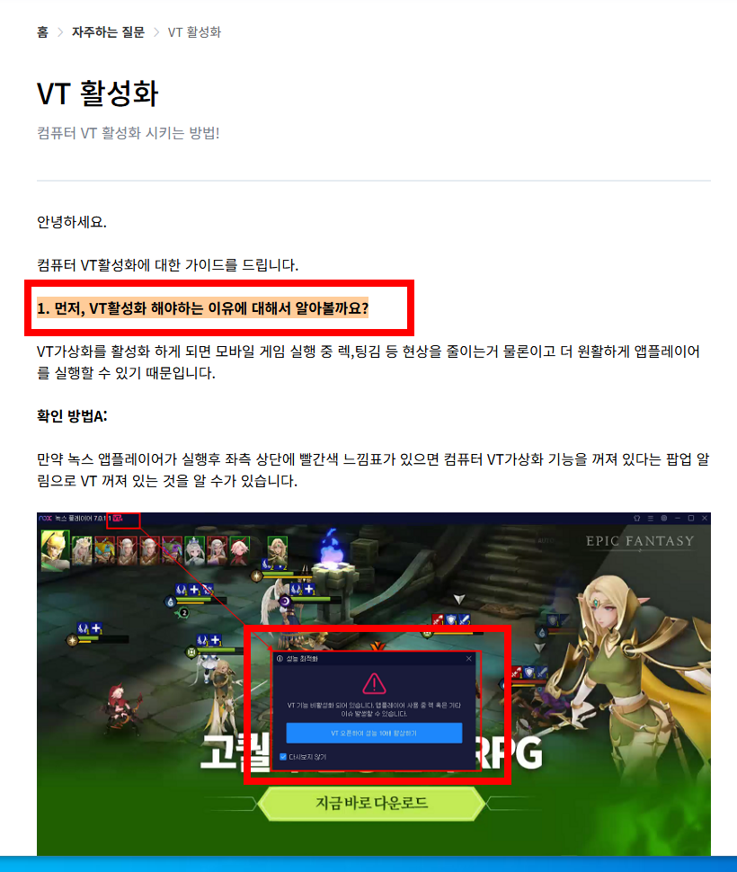 3. VT(가상화 기술) 설정법 — 이거 안 켜면 녹스가 느립니다