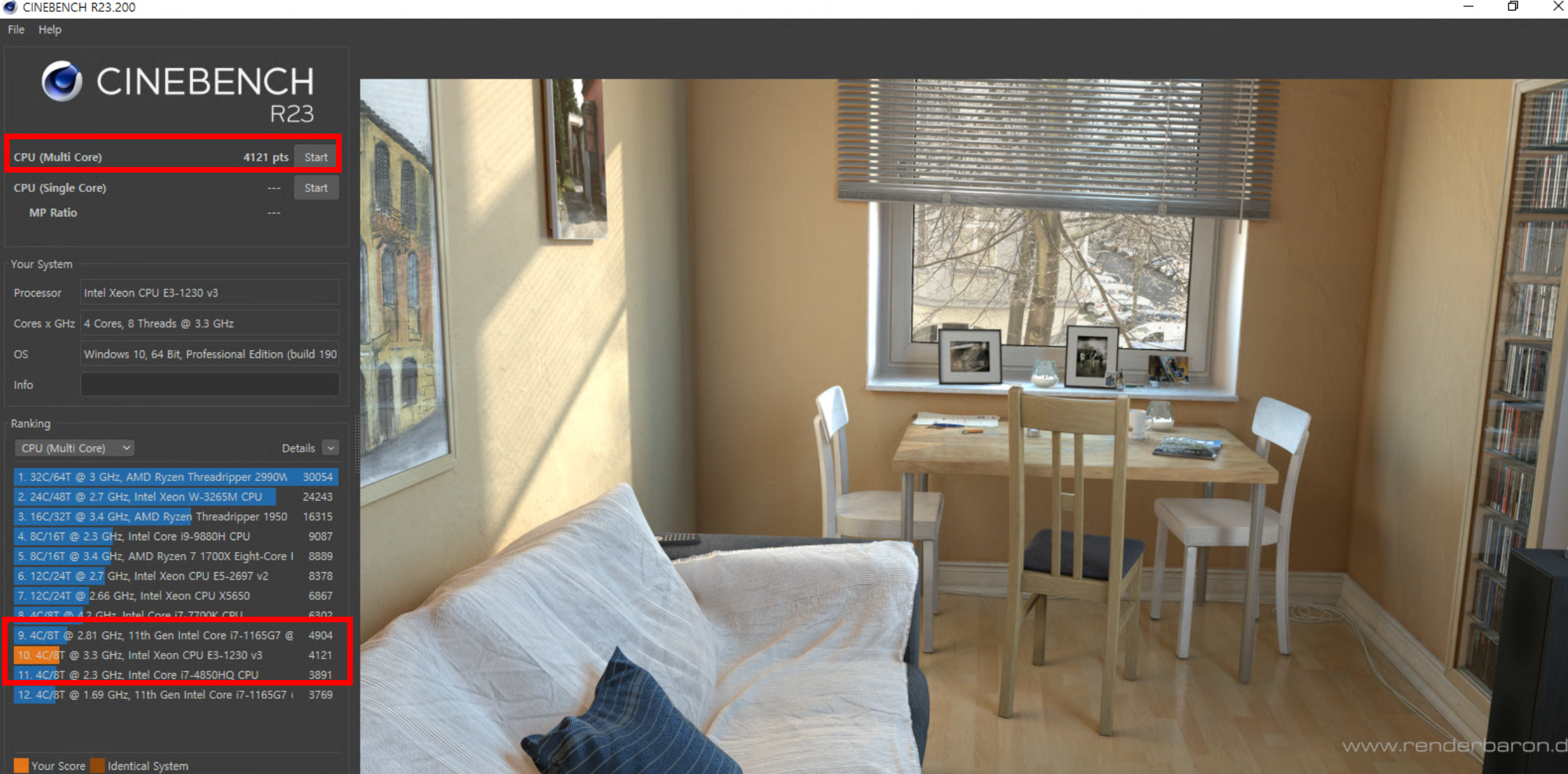 일반적인 합성 벤치마크와 다른 점은, 실제 3D 작업에서 쓰는 렌더링 엔진을 그대로 사용한다는 것입니다. 그래서 결과가 실무 렌더링 성능과 비교적 잘 일치하고, 유튜브 하드웨어 리뷰나 IT 매체에서 CPU 비교 기준으로 이 점수를 거의 빠짐없이 사용합니다.
