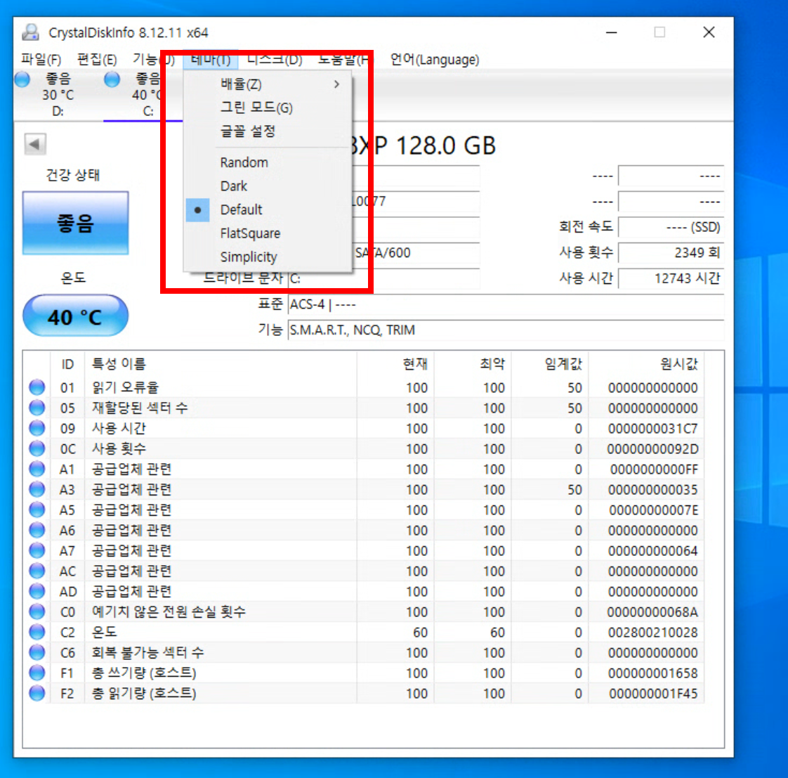 CrystalDiskInfo는 한 번 열어서 확인하고 끄는 식으로 쓸 수도 있지만, 백그라운드에 상주시켜 놓으면 실시간 모니터링 도구로 활용할 수 있습니다.