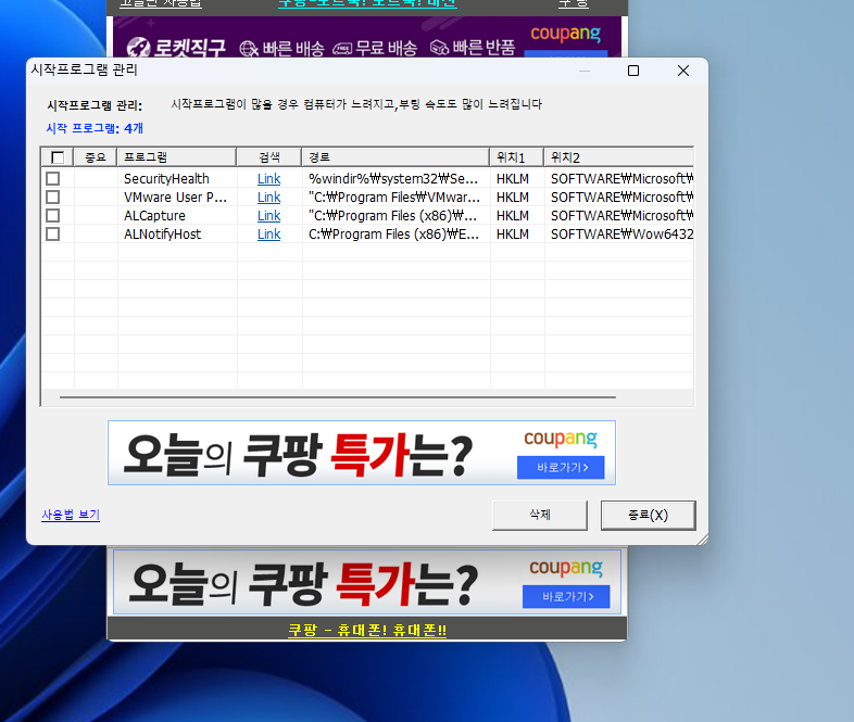 이 기능은 현재 윈도우 구동에 필수적인 기본 프로세스를 제외하고, 메모리를 잡아먹고 있는 불필요한 백그라운드 프로그램들을 강제로 종료시킵니다. 컴퓨터가 왜 이렇게 느리지? 싶을 때 재부팅 대신 가장 먼저 눌러봐야 할 응급처치 버튼입니다.