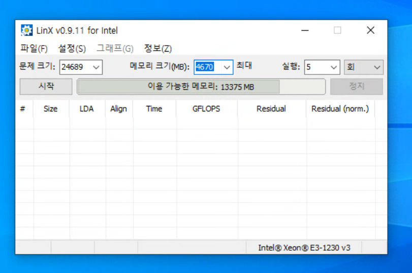 린팩 벤치마크의 원리는 이렇습니다. 대규모 연립방정식(선형 방정식)을 반복적으로 풀면서, 매번 같은 답이 나오는지 확인합니다. CPU가 안정적이면 동일한 연산에서 항상 동일한 결과가 나와야 하는데, 오버클럭이 불안정하면 같은 문제를 풀어도 다른 답이 나옵니다. 이때 LinX가 "에러 발생"을 띄워주는 겁니다.