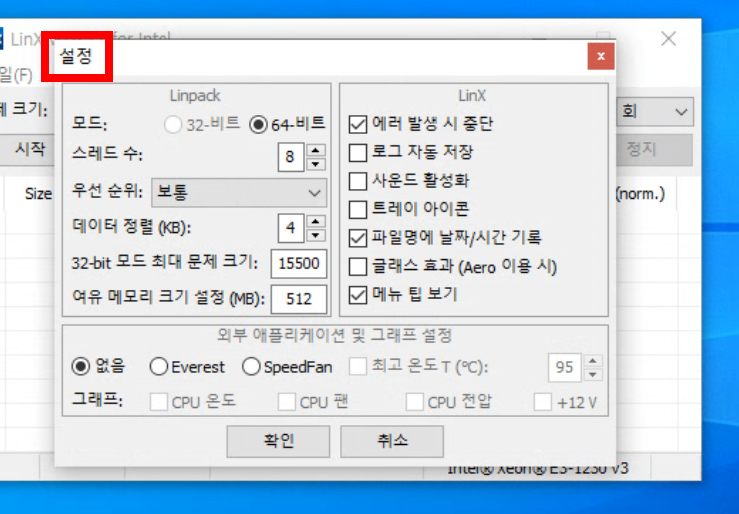 테스트 전에 백신(안티바이러스) 프로그램의 실시간 감시를 끄거나, LinX 폴더를 예외 처리해 두세요. 일부 백신이 linpack_xeon64.exe를 의심스러운 프로세스로 잡아서 테스트가 중간에 끊기는 경우가 있습니다.