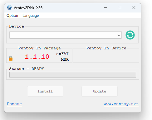Ventoy의 새 버전이 출시되었을 때, USB에 이미 Ventoy가 설치되어 있다면 다시 설치할 필요 없이 업데이트만 하면 됩니다.